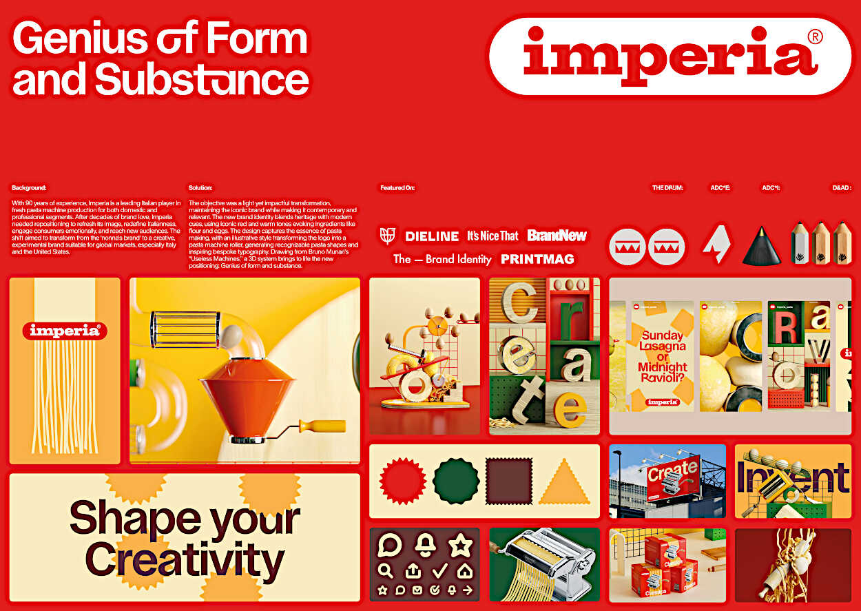 È tutta italiana, invece, la campagna di rebranding ‘Imperia – Genius of Form and Substance’ realizzata da Imperia & Monferrina Roma e Landor Milano (gruppo WPP) per riposizionare come internazionale il brand italiano di macchine per la pasta. Ha vinto un Bronzo nella categoria Design.