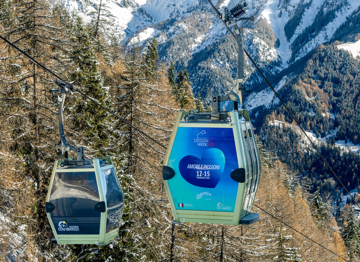 Dal 12 al 15 febbraio, Courmayeur tornerà ad accogliere il Courmayeur Design Week-end, confermando la vocazione di palcoscenico alpino del design italiano. Il territorio diventerà luogo di incontro tra progettisti, aziende, installazioni, mostre e conversazioni, in un dialogo tra architettura, creatività e paesaggio. Il tema portante sarò ‘Amore & Passioni’ (sarà il weekend di San Valentino) . Lo studio di design della comunicazione LeftLoft l'ha interpretato con colori e immagini attraverso 45 parole d'amore che trasmettono emozioni e guidano il modo di progettare, trasformando la funivia di Courmayeur Mont Blanc in una galleria a cielo aperto. Alle 45 parole se ne aggiungono due dedicate al Design Week-end. “Le parole saranno presenti su ogni cabina della funivia di Courmayeur Mont Blanc come un invito a riflettere sul linguaggio che costruisce visioni e possibilità” ha spiegato David Pasquali, founder e creative director di Leftloft. (12 dicembre 2025)