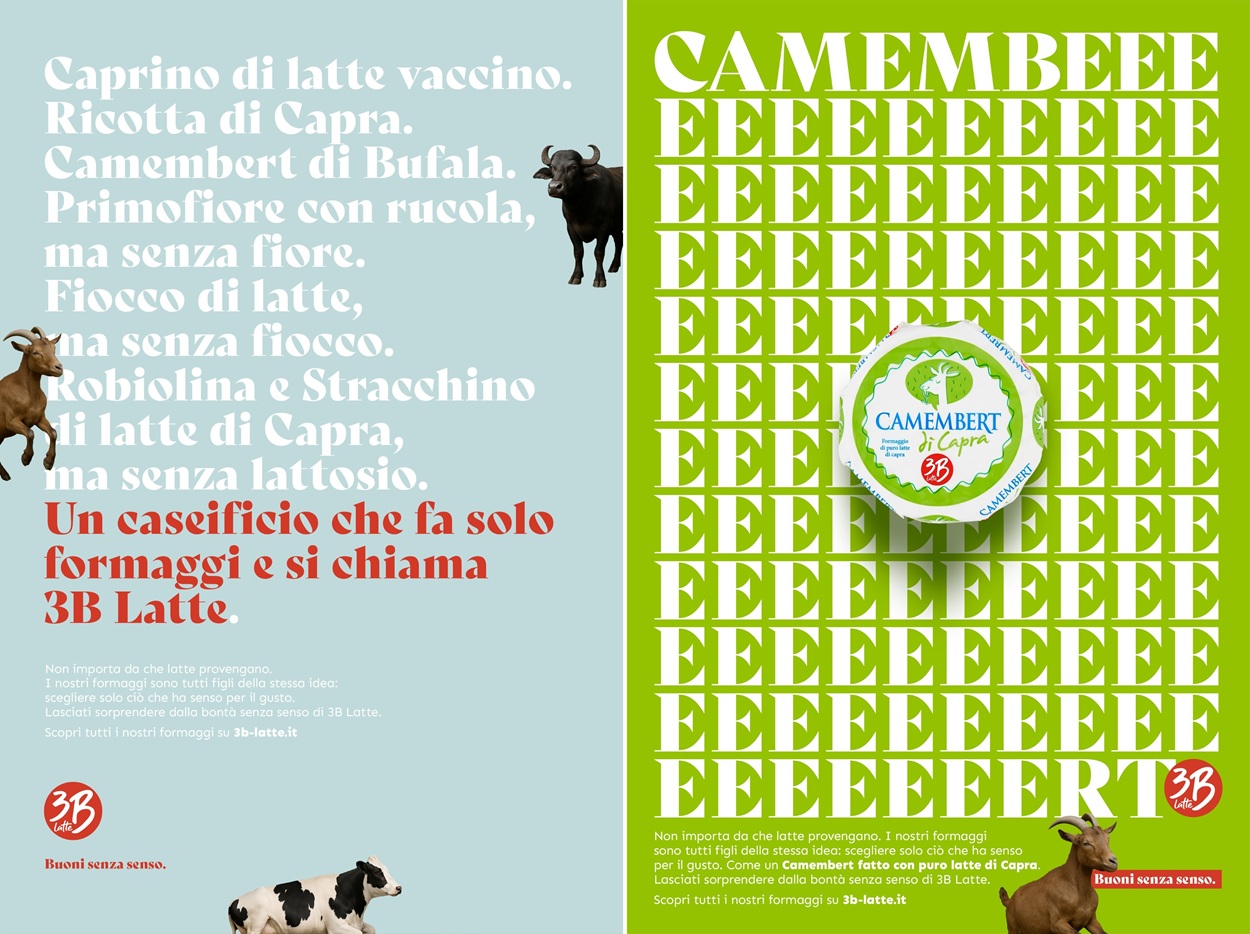 I formaggi 3B Latte ‘buoni senza senso’ nella campagna in Ooh e Dooh di Rude