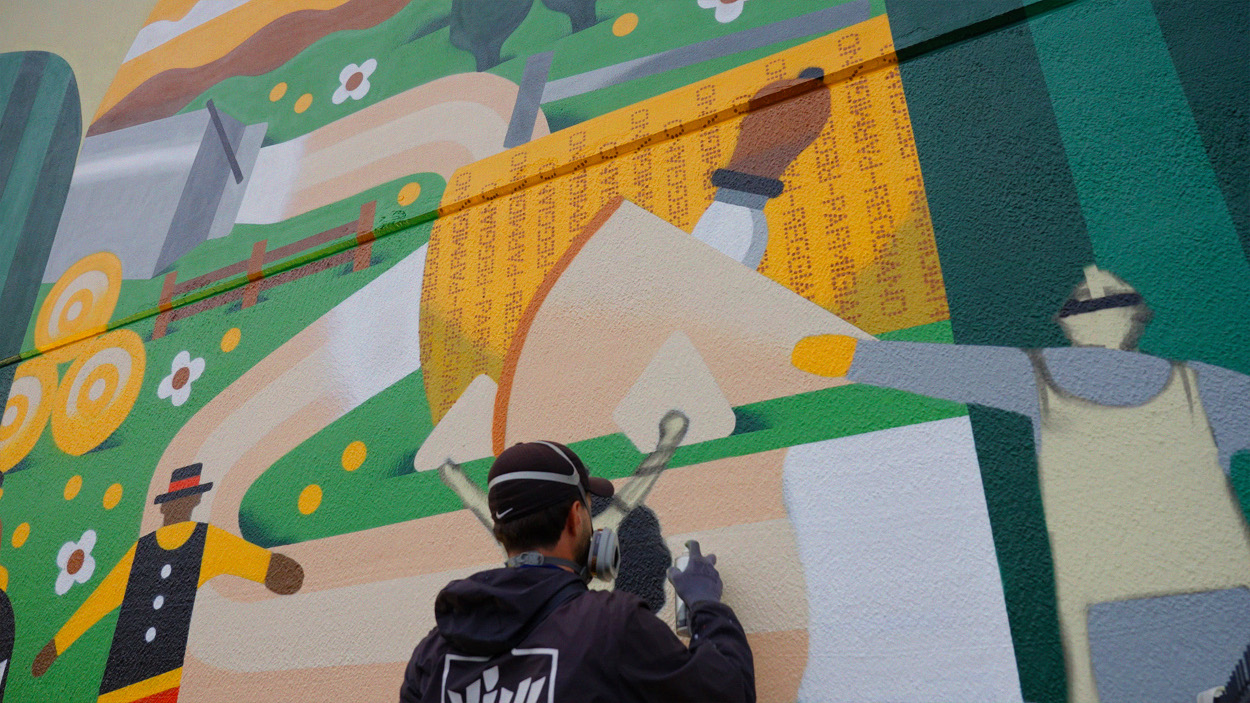 Attraverso una mappa del territorio, disegnata dall'illustratore Giacomo Bagnara, i visitatori possono accedere a un percorso gastronomico e partecipare ad attività raffigurate come timbri. Le illustrazioni culminano alla Latteria Villa Curta a Reggio Emilia, con un murale celebrat. ivo che rafforza il concept di campagna, realizzato dallo street artist Vincenzo Magno.