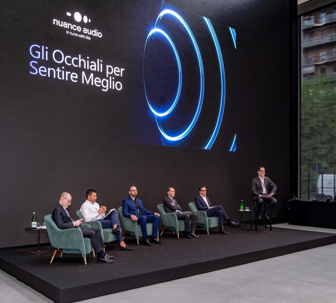 14 maggio 2025 - EssilorLuxottica presenta Nuance Audio Glasses, occhiali dotati di un dispositivo acustico integrato invisibile, che unisce in un'unica soluzione la correzione visiva e un supporto auditivo per chi ha un deficit lieve o moderato. Sono occhiali su cui si può montare qualsiasi tipologia di lente, che in più aiutano a sentire meglio, perché amplificano il suono e rendono più chiare le parole di chi parla davanti a chi li indossa: permettono di catturare il suono nella direzione verso cui si sta guardando riducendo al minimo i rumori ambientali, e quindi di comprendere il parlato anche in ambienti rumorosi. Senza alcun impatto estetico negativo. Un'innovazione con cui EssilorLuxottica entra nella categoria di prodotto med-tech.
