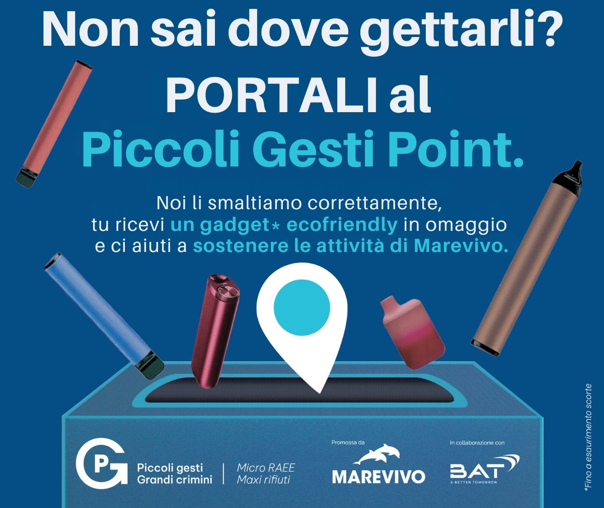 11 luglio 2025 - Torna con la sesta edizione ‘Piccoli Gesti Grandi Crimini’, la campagna di Marevivo in collaborazione con BAT Italia, e col patrocinio del Ministero dell'Ambiente e della Sicurezza Energetica, che punta a sensibilizzare sull'importanza dei piccoli gesti per un futuro più sostenibile. L'obiettivo è di proseguire la lotta contro il littering, ovvero l'abbandono dei mozziconi di sigaretta e delle microplastiche nelle città e sulle spiagge italiane, come nell'edizione 2023 (vedi news), e a favore di una corretta gestione dei RAEE (Rifiuti da Apparecchiature Elettriche ed Elettroniche), soprattutto se di piccole dimensioni, come nell'edizione 2024 (vedi news).
