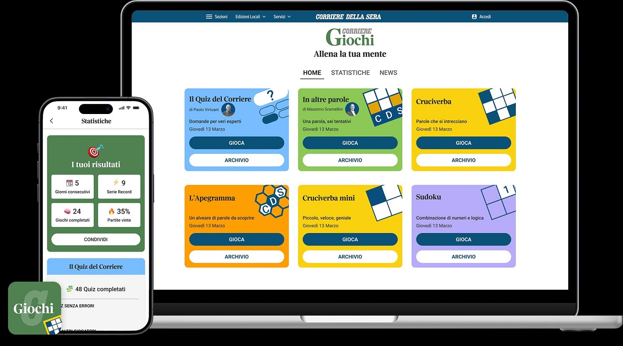 Ogni giorno su corriere.it/giochi e nella nuova app dedicata, gli utenti potranno mettersi alla prova con un'ampia selezione di giochi originali: