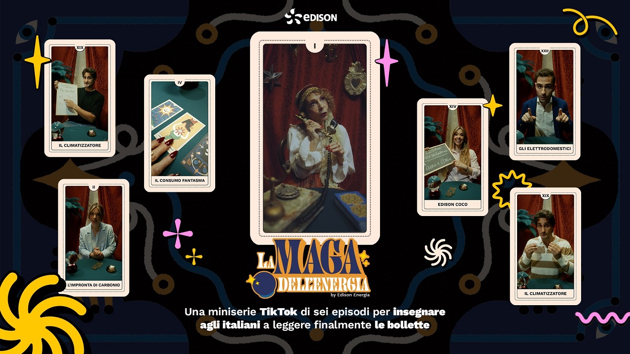 “L'insight creativo è che può sembrare più facile leggere il futuro che una bolletta - spiega Andrea Fusco, head of creative & content di WPP Media –. Da qui l'idea di agganciarsi al trend dei tarocchi, che su TikTok conta oltre 15 milioni di contenuti, reinterpretandolo con un linguaggio ironico e pop per generare conversazioni intorno al tema dell'energia”. Protagonista della campagna è Cloris Brosca, cartomante del programma Luna Park in onda negli anni ‘90 sulla Rai con la sua ‘Luna Nera’.