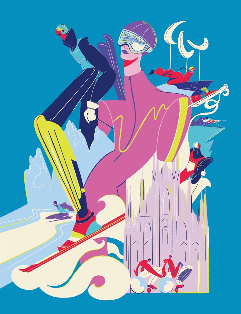 Le due opere, ideate e realizzate da Olimpia Zagnoli per i Giochi Olimpici e da Carolina Altavilla per i Paralimpici, interpretano lo spirito italiano attraverso un racconto visivo che unisce competizione, entusiasmo e valorizzazione dei territori ospitanti. Olimpia Zagnoli cattura l'essenza dei Giochi con un linguaggio immediato, minimalista, che si è concretizzato in un visual ironico e simbolico, dove i cinque cerchi hanno dettato la palette dei colori. L'Iconic Po. ster Paralimpico di Carolina Altavilla è un omaggio alla dimensione collettiva e alla forza inclusiva dei Giochi. Valorizza la determinazione e l'energia degli atleti. Il messaggio è ‘We participate as a community’.