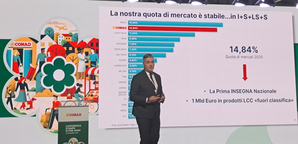 Conad spinge sulla diversificazione e annuncia Benessity nel 2026. Investirà in marketing e comunicazione 45 milioni