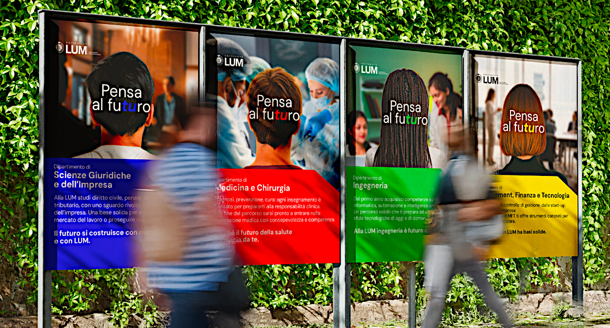 L'Università LUM Giuseppe Degennaro ha lanciato la campagna di comunicazione ‘Pensa al Futuro’ per le iscrizioni 2025-2026. In controtendenza a messaggi promozionali aggressivi e promesse di risultati immediati, la LUM sceglie di valorizzare il momento della scelta, restituendo centralità al pensiero critico, alla riflessione, al progetto individuale. ‘Pensa al Futuro’ è un invito rivolto ai giovani a fermarsi, ascoltarsi, sognare, valutare e poi scegliere con consapevolezza. Alla campagna istituzionale si affianca la declinazione dedicata alla School of Management rivolta a un pubblico già formato che vuole raffinare le competenze professionali, caso in cui LUM si propone come guida progettuale. Il progetto creativo e strategico è stato sviluppato da Barabino & Partners (Excellera Advisory Group) col coordinamento operativo di bDigital, la sua digital agency. Il piano media include canali digital, social, advertising ATL e installazioni interattive a Bari e altre città pugliesi. (11 giugno 2025)